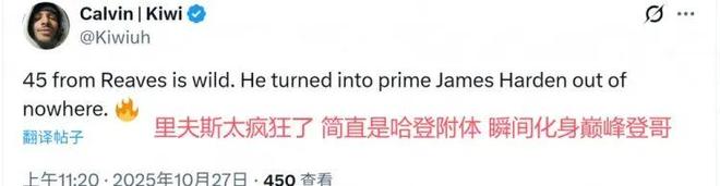 本賽季至今3場比賽,裏夫斯一共罰球37個,躍升至全聯盟第2,僅次於亞曆山大(44次)。