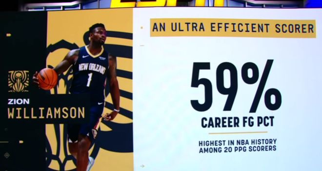 NBA曆史上一共有85位球員生涯場均得分達到20+,而錫安59%的投籃命中率是其中最高的。沒錯,這意味著他超越了奧尼爾、約基奇、賈巴爾這些內線巨獸。在缺陣對快船的比賽前,錫安已經連續出戰了35場比賽,這是他職業生涯最長的連續出場紀錄。