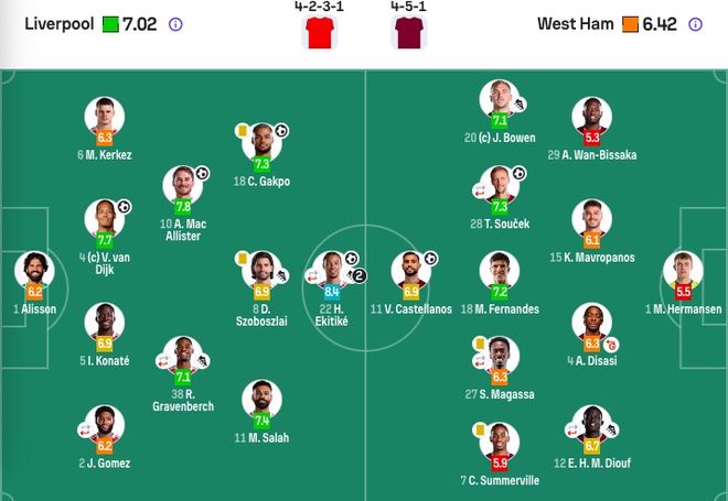 利物浦首發:1-阿利鬆、2-戈麥斯(76'30-弗林蓬)、4-範戴克、5-科納特、6-凱爾凱茲、8-索博斯洛伊、10-麥卡利斯特、38-赫拉芬貝赫(85'42-尼奧尼)、11-薩拉赫、18-加克波、22-埃基蒂克(76'73-恩古莫哈)